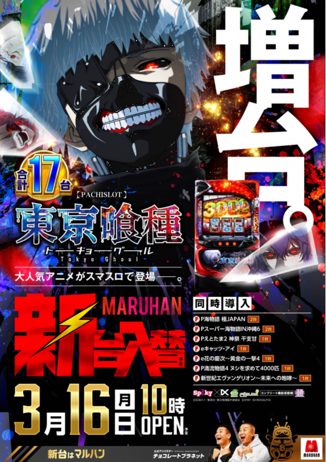 3月16日(月)新台入替予定★L東京喰種増台!10時開店!