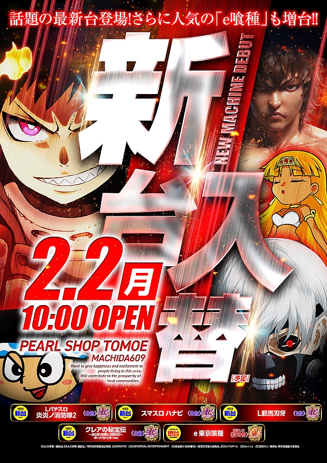 2月2日新台入替!L炎炎2&Lハナビ導入!e東京喰種増台!
