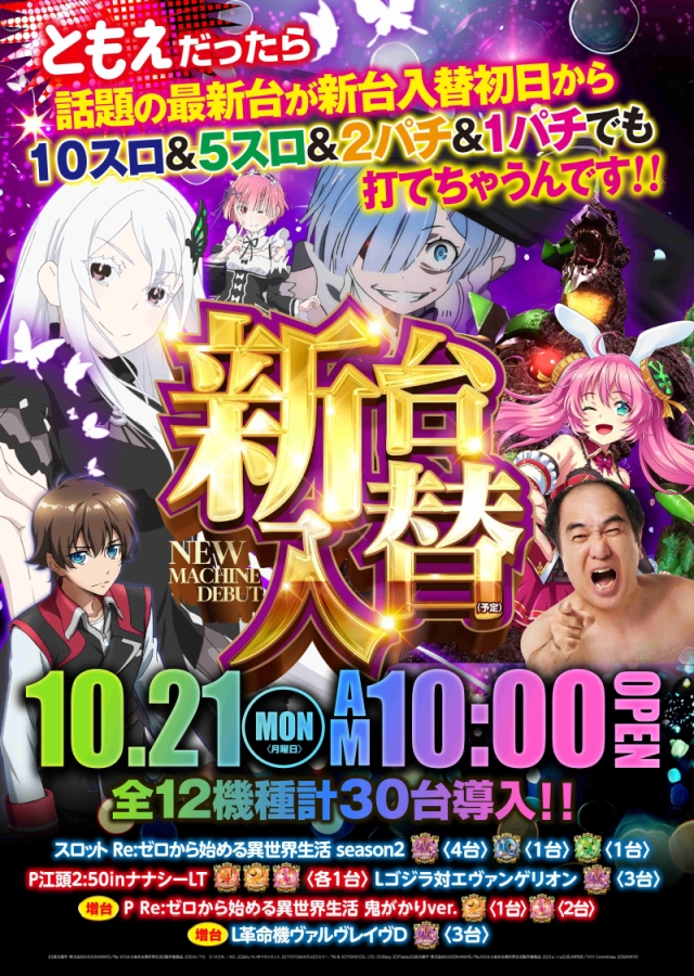 スマスロRe:ゼロを全レートに導入!新台入替10時OPEN!