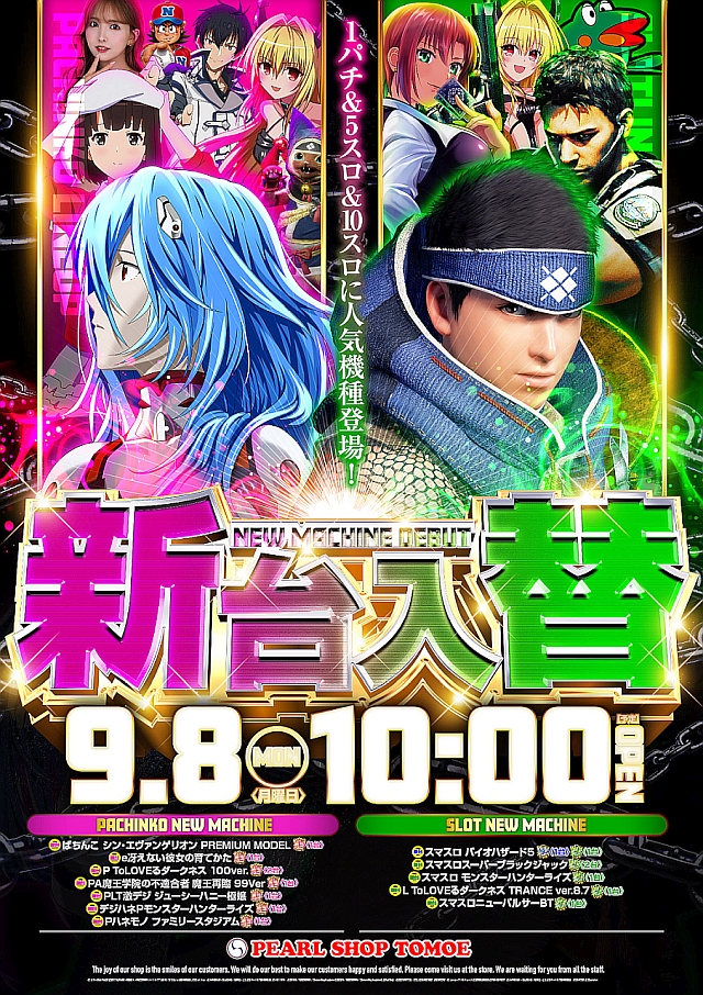 9月22日(月)11機種15台導入!新台入替10時OPEN!