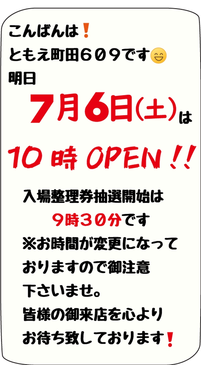 【ともえ町田609】7月6日(土)10時OPEN!