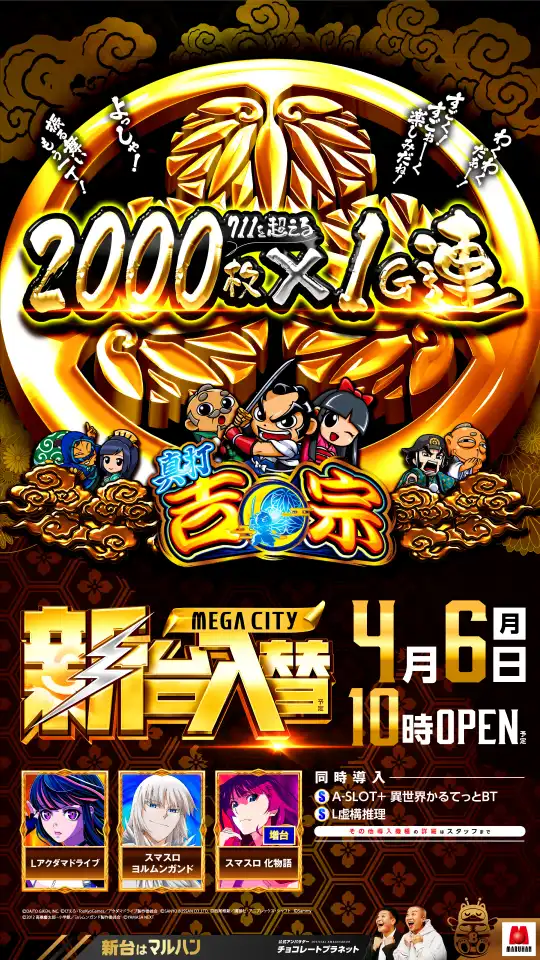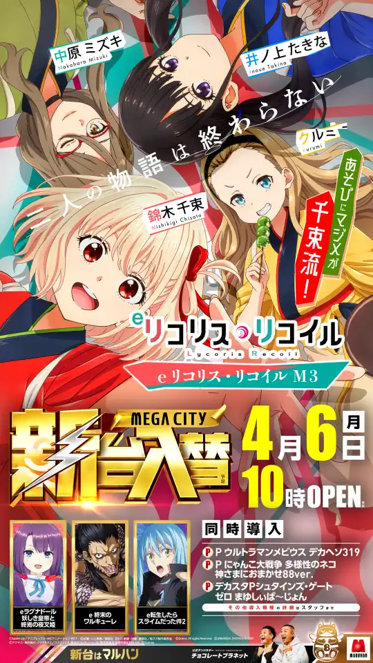 マルハン東大和店3月16日、東京都東大和市にある「マルハン東大和店」にて「双龍」をおこなった。ホール内には公式キャラクターであるにゃんまるの装飾が多数。キュートな見た目のぬいぐるみも置かれており、フロアを華やかに彩っていた。 壱頭目の龍は… …