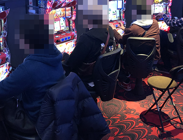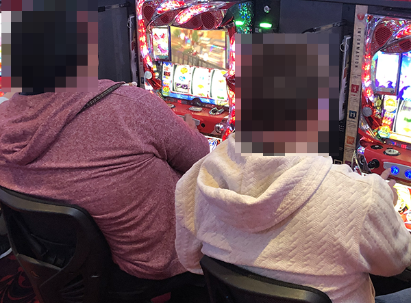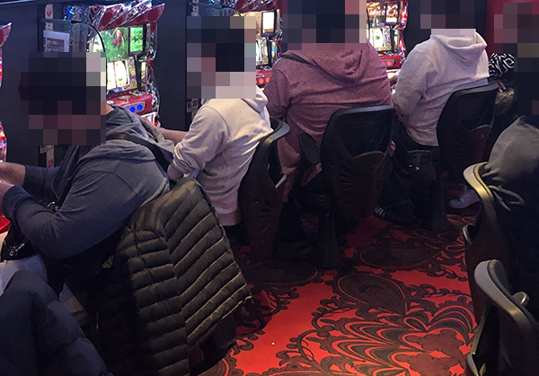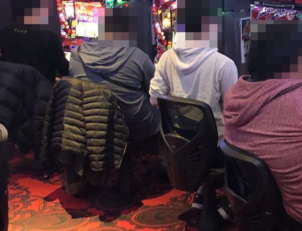 赤色を基調としたパチスロコーナーをみると、プレイヤー同士で談笑をしているなど、楽しい時間を過ごせているといった姿が多かった。スタッフとにこやかに話している場面も確認している。