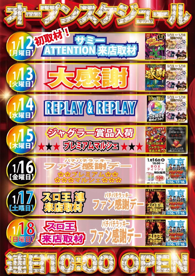 明日1月13日 全てのお客様に大感謝!全機種全台で盛り上がれ