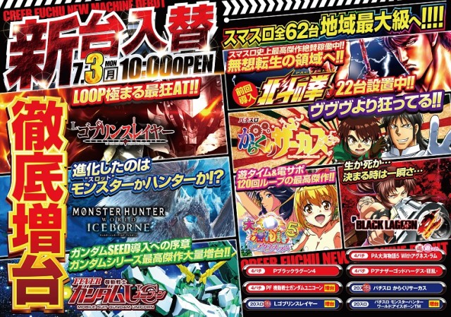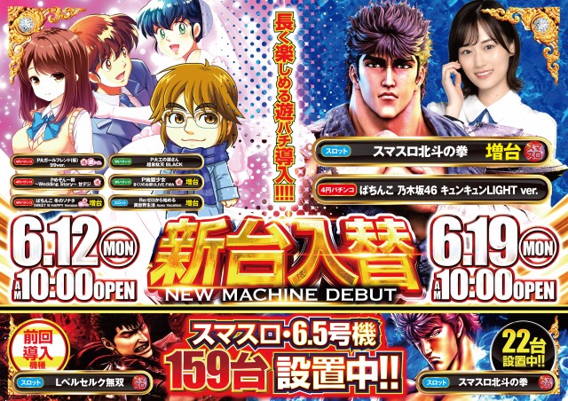 ご注意下さい!スマスロ北斗地域最大級の22台設置!!スマスロ全62台設置済み