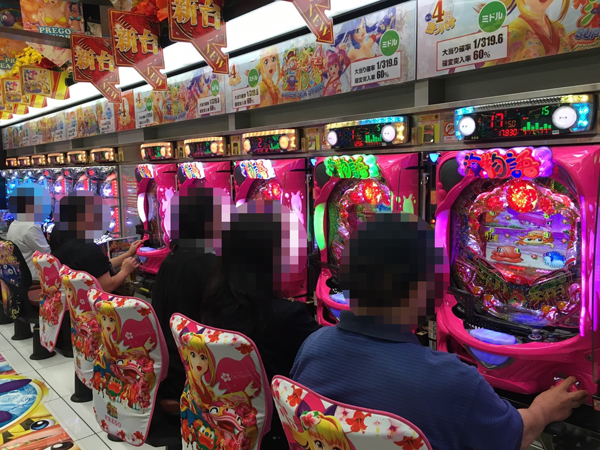 取材日はパチンコ・パチスロコーナー共に多くのプレイヤーが集まり、にぎわいを見せていた。