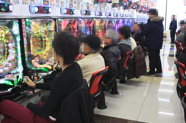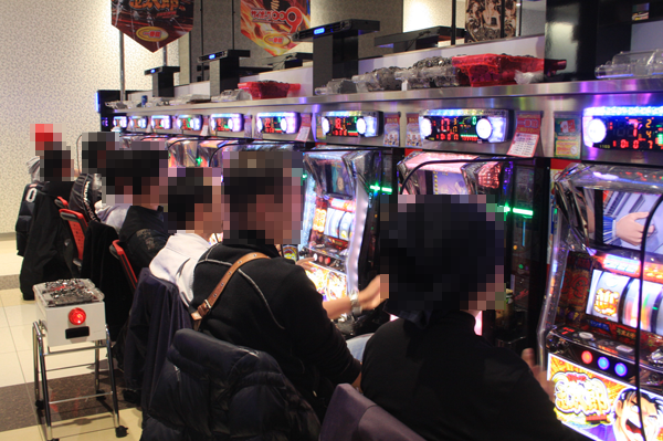 開店直後の様子を見てみると、「サラリーマン金太郎 出世回胴編」、「CRフィーバー真花月」、「CRぱちんこ よしもとタウン」といった新台は入場抽選を受けたプレイヤーで埋まっていた。このホールの新台が期待されているからこそ、早くから満席となっていたのだろう。