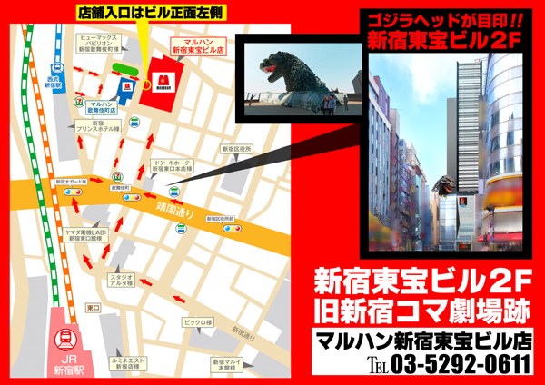 東京都新宿区歌舞伎町1-19-1 新宿東宝ビル2階 大きな地図で見る |
