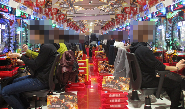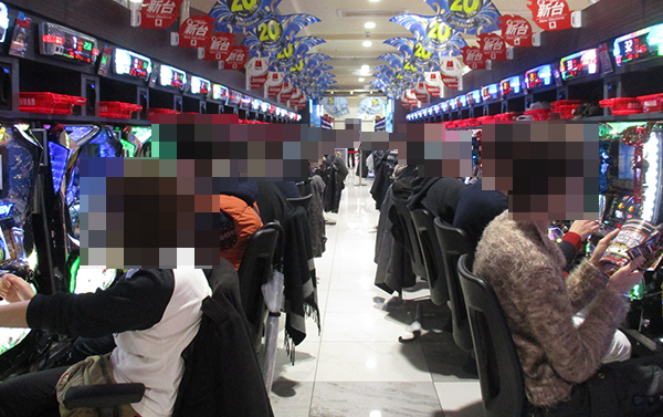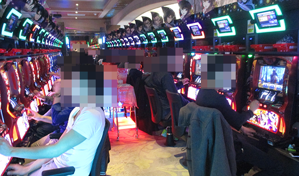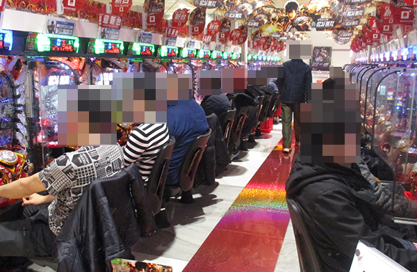 14時頃になっても4円パチンコの「ぱちんこCR真・北斗無双」に空き台が出ることはほとんどなく、満面の笑みを浮かべて遊技をおこなっているプレイヤーも多数。設置台数が多いこともあり、ひときわ活気が感じられた。