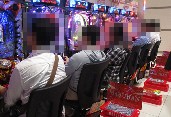 16時頃の4円パチンコをみると、「ぱちんこCR真・北斗無双」や「CR烈火の炎2」、「CR牙狼 魔戒ノ花」などがほぼ満席と大盛況。