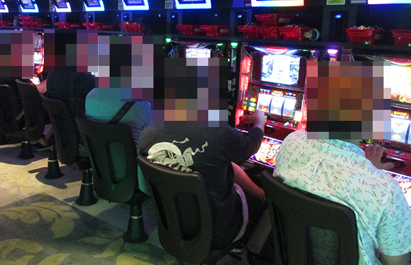 20円パチスロにも「バジリスク~甲賀忍法帖~絆」や「パチスロ北斗の拳 強敵」、新台の「ぱちスロ テラフォーマーズ」など、ほぼ満席となっている機種は多い。