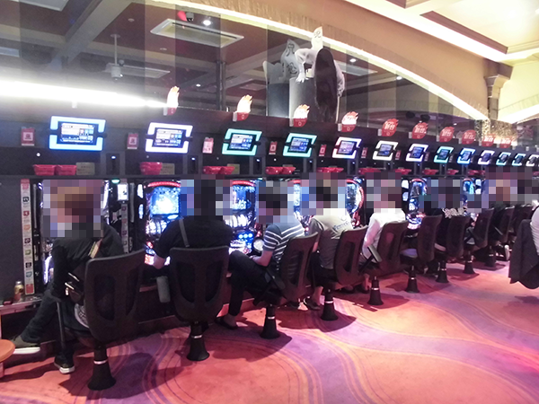 「ミリオンゴッド-神々の凱旋-」や「マイジャグラーⅢ」をはじめとしたジャグラーシリーズなどで遊技を楽しむプレイヤーも多く、各シマに魅力的な光景が広がっていた。