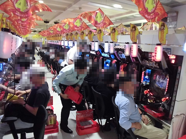 4円パチンコで、とくに活気づいていたのが「CRリング 終焉ノ刻」。思い描いていた通りの展開に、満面の笑みを浮かべるといったプレイヤーもみられた。