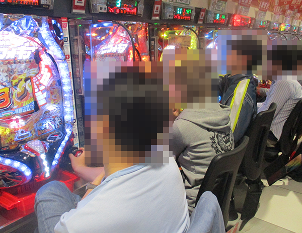 4円パチンコの「CRフィーバー戦姫絶唱シンフォギア」や低貸し玉コーナーにむかう姿も多く、ホール全体が盛り上がっていた。
