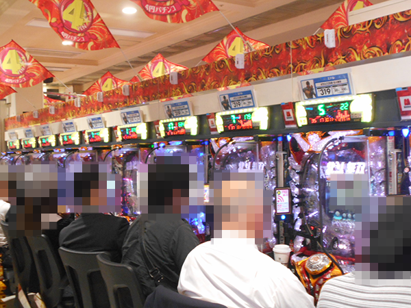 4円パチンコに目を向けると、「ぱちんこCR真・北斗無双」が活況。機種の性能を引き出しているといったプレイヤーが多く、シマ全体に魅力的な光景が広がっていた。