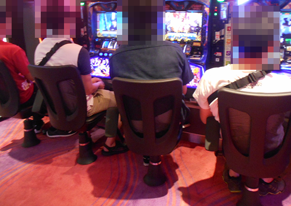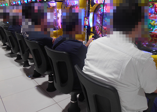 午後になっても、21.27円パチスロの「バジリスク~甲賀忍法帖~絆」が大盛況。機種の性能を引き出せているといったプレイヤーがおり、シマ内に魅力的な光景が広がっていた。