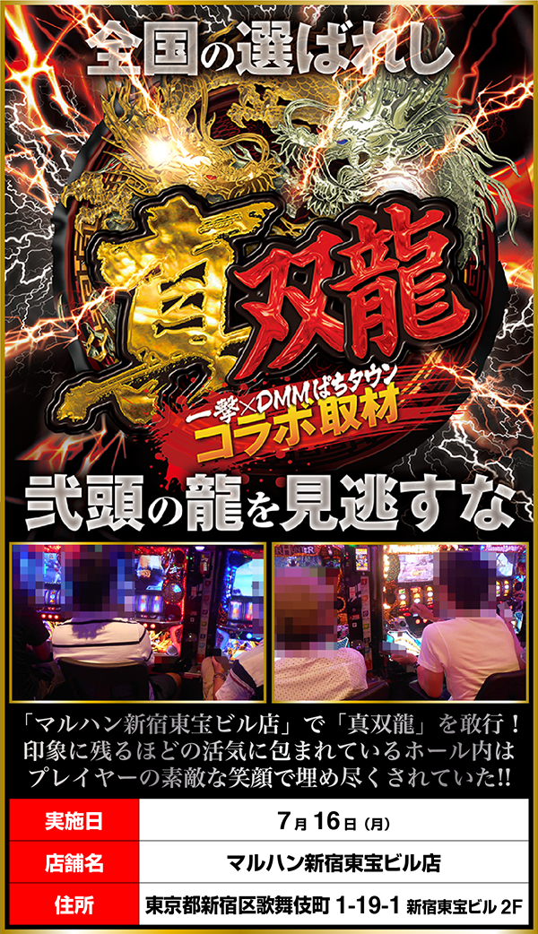 にぎやかな繁華街にある「マルハン新宿東宝ビル店」で「真双龍」を敢行。