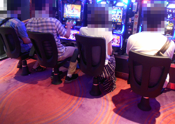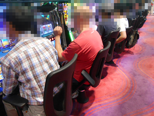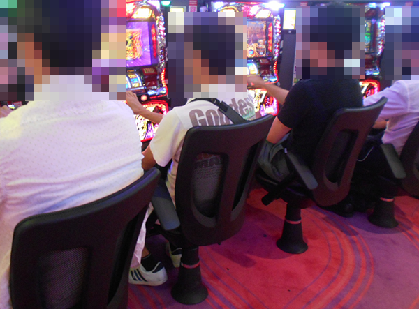 15時頃の21.27円パチスロで、ひときわにぎわっていたのが「バジリスク~甲賀忍法帖~絆」と「沖ドキ!-30」。プレイヤーたちのうれしそうな様子からは、充実した時間を過ごしていることがうかがえた。