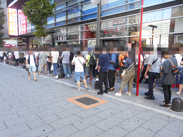 日差しが照りつけるなかで、朝から600人以上のプレイヤーが開店を待っていた。