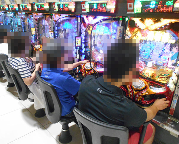 5円パチスロも好評。「戦国美少女 織田信奈の野望」や「SLOT魁!!男塾」、「SLOT魔法少女まどか☆マギカ2」などのさまざまな機種でプレイヤーが遊技をおこなっており、充実した時間を過ごせている様子であった。