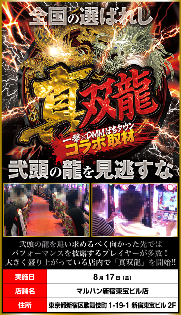 ホールに潜む弐頭の龍の存在を探るべく、「マルハン新宿東宝ビル店」にて、「真双龍」を敢行。