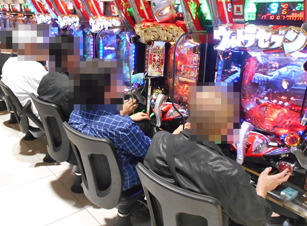 「CRフィーバー戦姫絶唱シンフォギア」や「CRぱちんこウルトラセブン2」なども盛り上がりをみせており、イキイキとした表情をみせながら遊技をおこなっていた。
