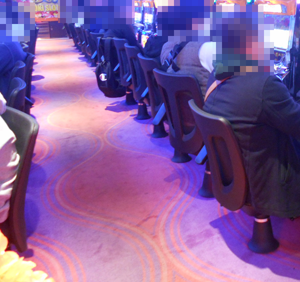 4円パチンコに目を向けると、「ぱちんこCR真・北斗無双」や「ぱちんこCR真・北斗無双 第2章」など、さまざまな機種が満席。うれしそうな表情でハンドルを握っているプレイヤーが多かったことも印象に残っている。