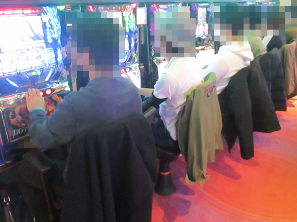 到着した16時頃には大勢のプレイヤーが訪れており、パチンコとパチスロの両方が盛況となっていた。