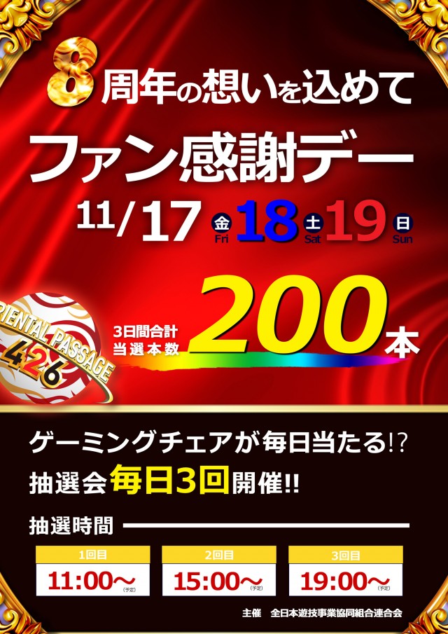 1位 11月30日(日) 2位 11月27日(木) 3位 11月29日(土)
