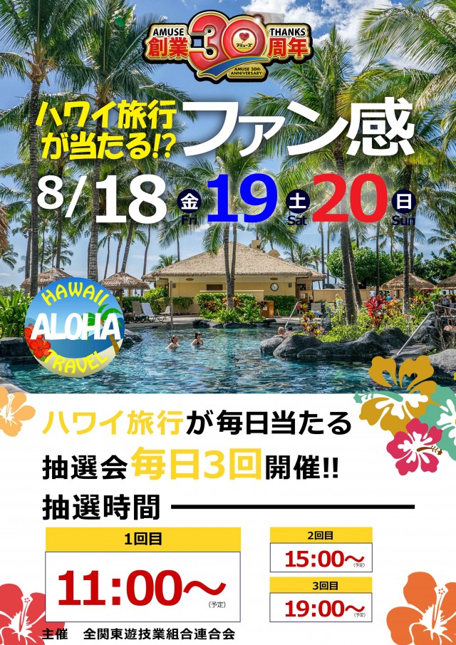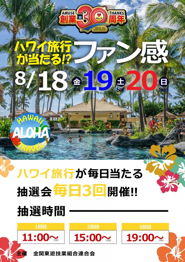 8/18からの3日間!ハワイ旅行が毎日当たる抽選会実施!