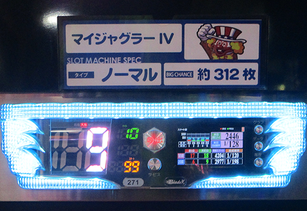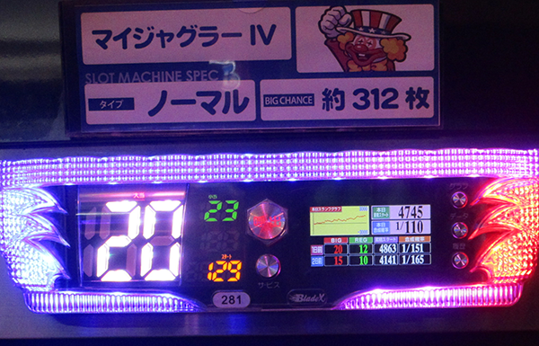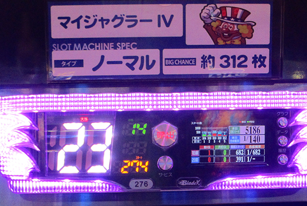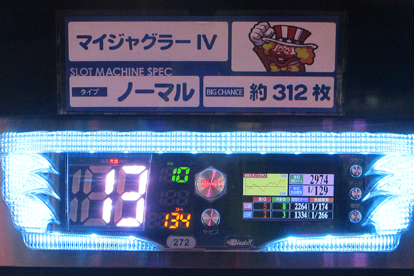 この日、ボーナス当選回数のBEST1の座に輝いたのは『マイジャグラーⅣ』の69回!