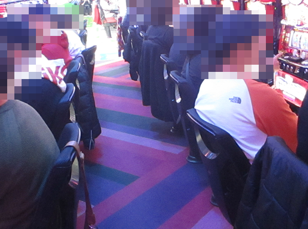 設置台数はパチスロコーナーで最多の16台であり、確認時はほぼフル稼働と大人気。老若男女を問わずに支持が厚く、かろやかにレバーを叩く姿がズラリと並んでいた。
