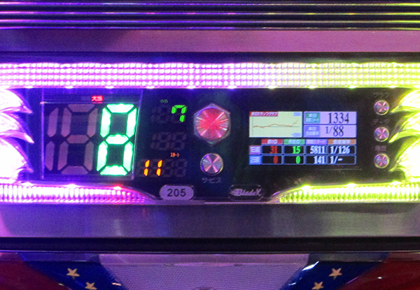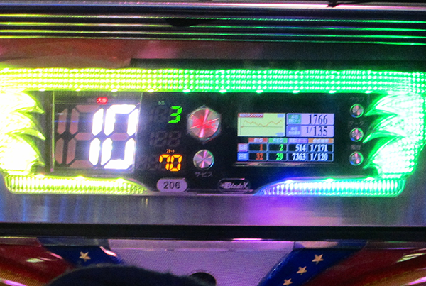 店内をまわっている15時頃には、ボーナス合算確率が1/100を上回っている台や1/135の台も目にした。