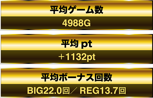 最終的な平均ゲーム数は4988Gで、平均ボーナス回数は約35.7回。