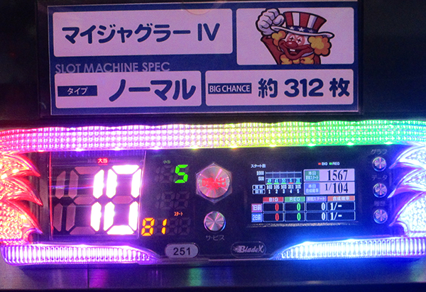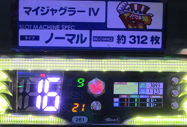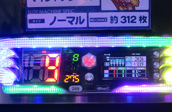 そのうちの1台は4465Gを消化した時点で36回のボーナスに当選していた。