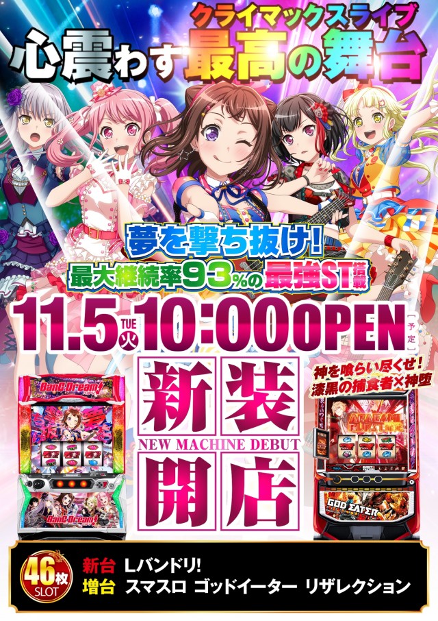 11月12日 新装開店 最新台大海物語4、らんま1/2登場!