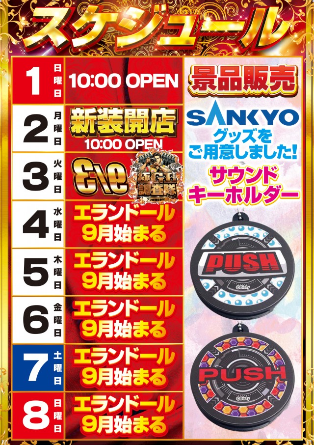 明日9月1日 新装開店ッ! 10時OPEN♪
