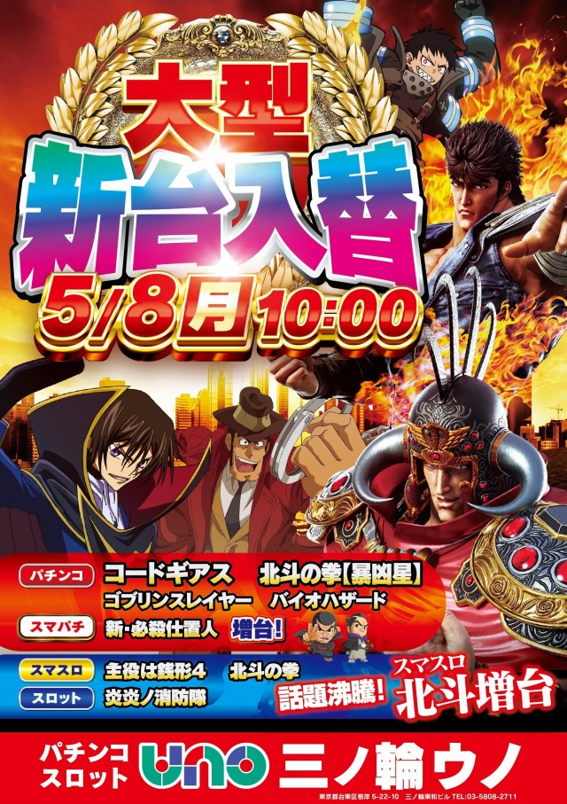 ★新台打つなら三ノ輪UNO★ 大型新台入替初日