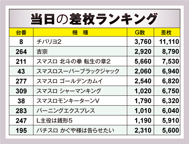 当日差枚ランキング