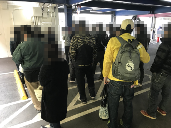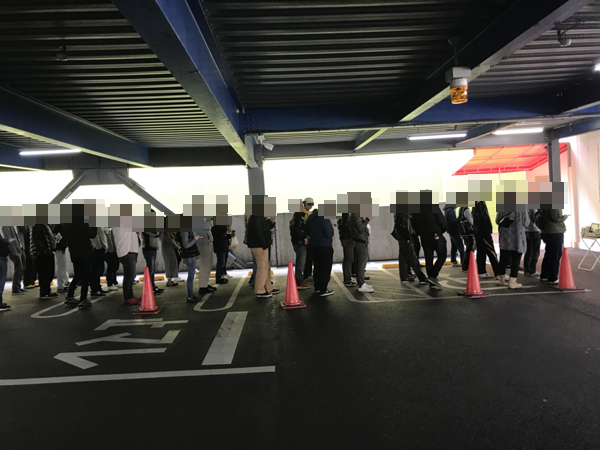 朝イチの並び時には、目立つようにDMMぱちタウンのジャンパーを着用するも、背負っているリュックによってロゴがみえず。