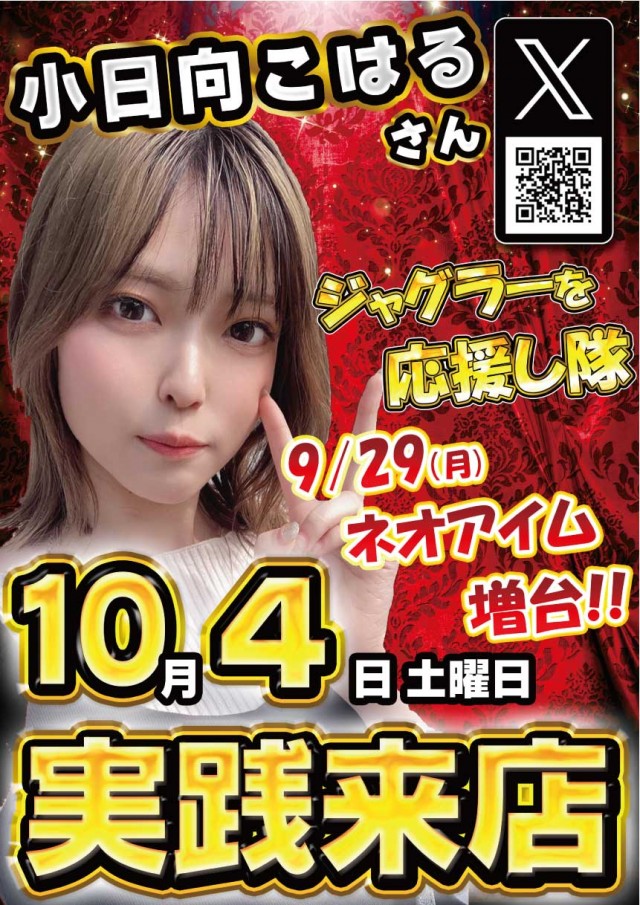 2025/10/04本日🌟小日向こはるさんが実践来店💕本日10時開店❗相模原市中央区10月4日 土曜日 10:00開店 先着入場 小日向こはるさんが実践来店!!  更に明日10月5日は・・・ 10:00開店 抽選入場 感謝の想いが溢れ出す!!   皆様のご来店お待ちしております!!