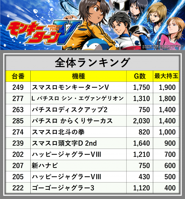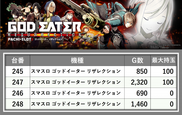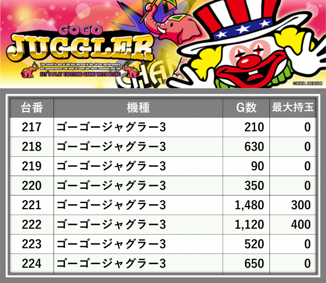 厳選された取材対象機種をはじめ、その他スロット全体から好記録が飛び出した!プレイヤーが楽しんだ1日を下記データにて振り返ってみて欲しい。