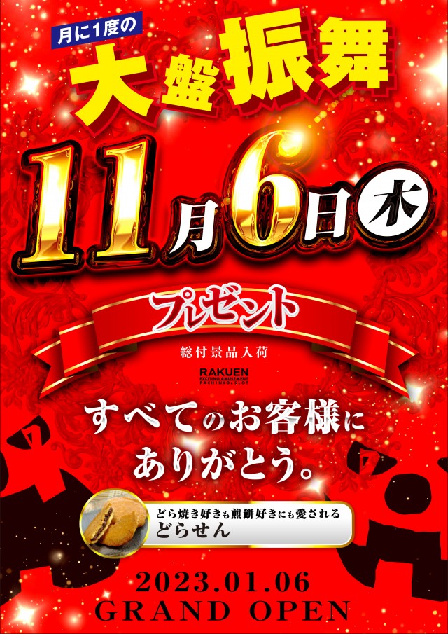 明日は総付景品配布予定!感謝を込めてお出迎え致します!