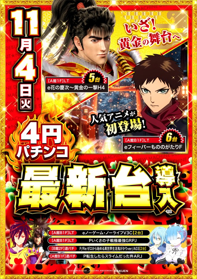 明日は大型新台入替!最新機種を多数導入でお待ちしております!