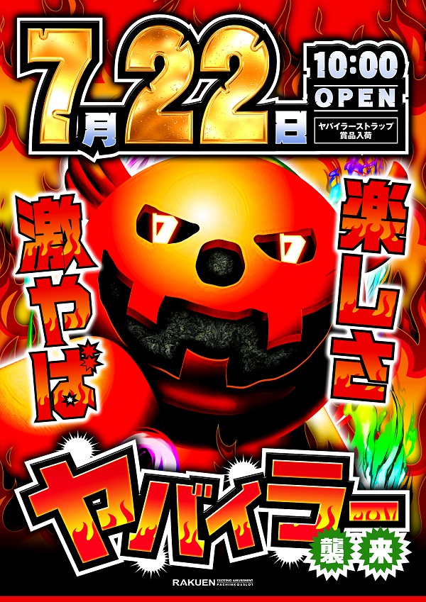 明日7月22日ヤバイラー登場!朝10時より営業致します!