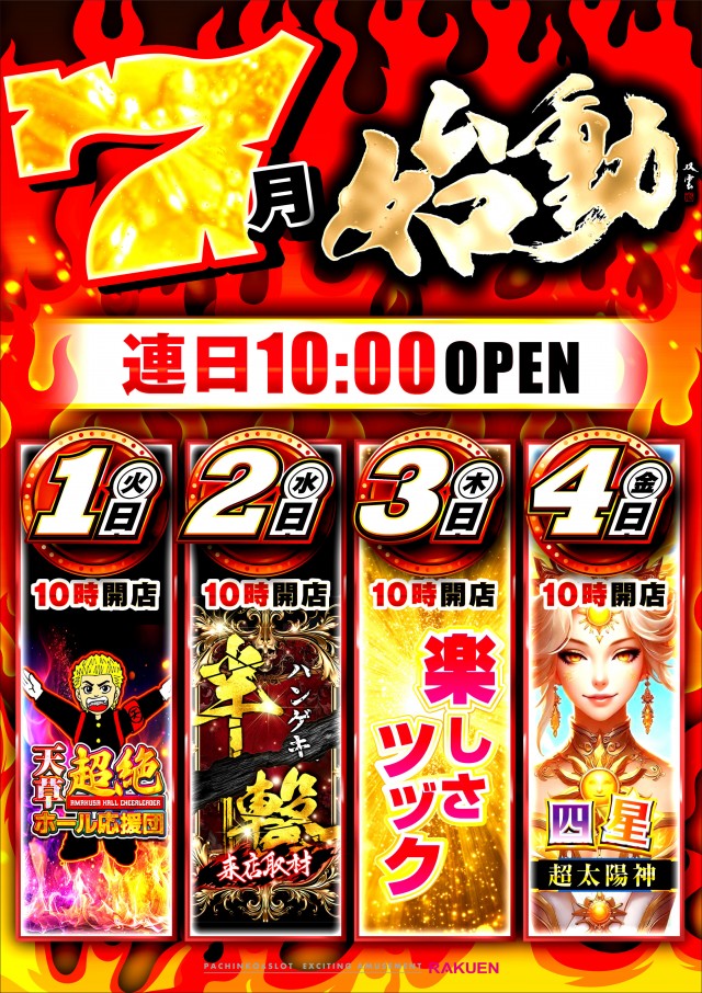 明日より7月突入♪月始まりも朝10時より元気に営業致します!