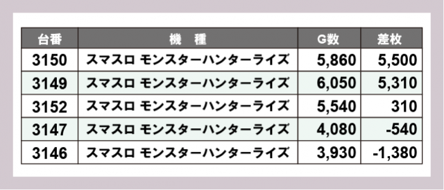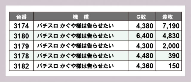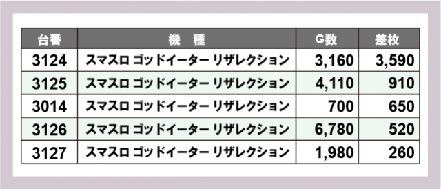 ※差枚数順に掲載しています
