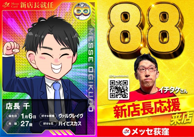 8/8 🎉新店長就任🎉 本日のご来店お待ちしております