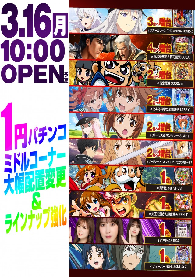 eリコリコ&L吉宗地域最大級設置!!全館10時フルオープン!