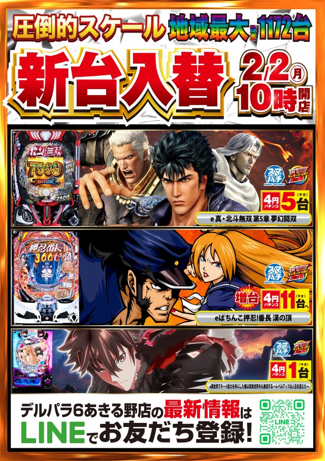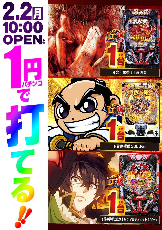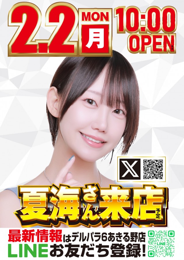 2月2日!夏海さん来店&新台入替!!全館10時フルオープン!